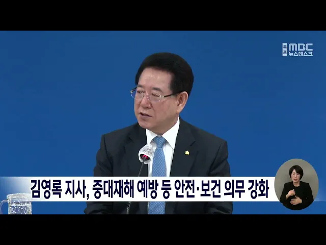 김영록 전남지사는 실국장 회의를 통해중대재해 예방을 위한 안전 대책 마련을 강조했습니다. 김 지사는 최근 전남에서 중대재해가 계속 발생하고 있다며지자체 차원에서도 안전과 보건 의무를 강화하고 공사 전 사전 점검과 대책 수립은 물론 시·군과 협조해 철저한 점검을 해 줄 것을 당부했습니다.