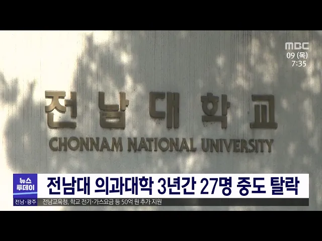 전남대 의과대학에서 최근 3년 동안 20여명의 재학생이 중도에 학업을 그만 둔 것으로 나타났습니다. 전남대는 지난해 3명의 재학생이 의과대학을 자퇴하는 등 최근 3년 동안 27명이 중도 탈락했으며, 자퇴를 비롯해, 미등록* 학사경고 등의 이유로 학업을 그만 뒀다고 밝혔습니다. 입학생 대부분이 타 지역 학생인 점이 중...