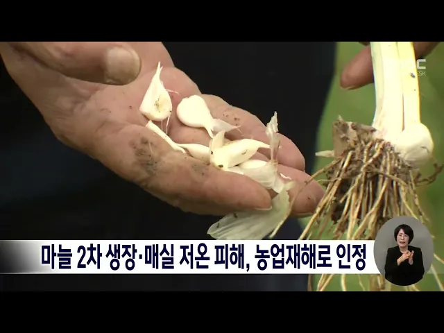 잦은 강우와 일조량 감소 등으로마늘이 2차 생장을 하는 '벌마늘' 피해와매실 저온 피해가 농업재해로 인정되면서 오는 13일까지 피해 조사에 나섭니다. 전라남도는 피해 정도에 따라 1헥타르 기준 농약대 250만 원, 대파대 550만 원을 지원할 예정이며, 피해율에 따라 50% 이상 농가에는생계비와 농업정책자금 상환 연기...