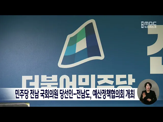 더불어민주당 22대 국회의원 전남지역 당선인들은전라남도와 2025년 예산 건의 안건 등 논의를 위한 첫 예산정책협의회를 내일(8) 전남도청에서 엽니다. 이번 예산정책협의회에서는 각 지역별로 국고지원사업 33건을 접수해 전남도와 집중 협의할 예정이며,총선 공약과 지역별 숙원사업에 대한 논의도 진행될 예정입니다.