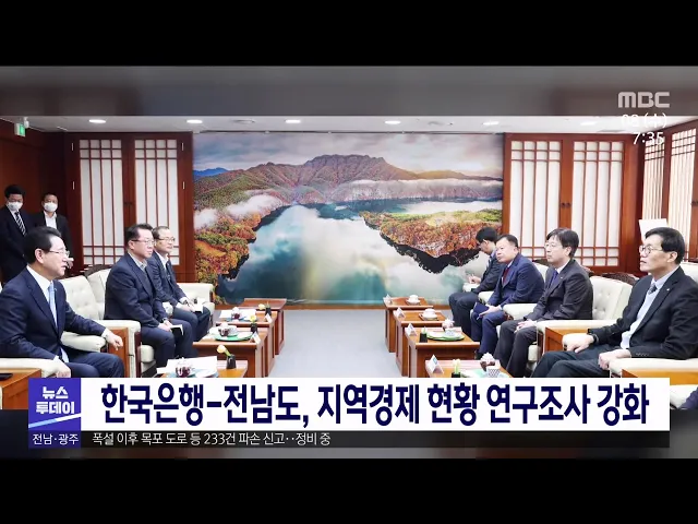 한국은행과 전라남도가 지역경제 현황 연구조사를 제조업은 물론 관광업 등 산업 분야별로 확대하기로 했습니다. 이창용 한국은행 총재는 국가 내 지역경제 현장을 이해해야 국가경제를 엄밀하게 알 수 있다며 지역 차원의 생산, 소비 등에 대한 최근 동향을 분석해 지역의 경제적 애로와 해결 방안 수립에 기여하도록 하겠...