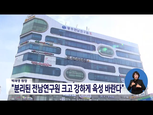 퇴임을 앞둔 박재영 광주전남연구원장이 오늘 전남도 실국장 회의에서 연구원이 분리 수순으로 들어가게 됐다고 말했습니다. 박 원장은 광주전남연구원이 분리될 경우 전국에서 가장 규모가 작은 연구원 2곳이 남게 되고 출연금도 각각 35억 원으로 축소된다며 전남연구원을 크고 강하게 육성해 주길 바란다고 말했습니다. ...