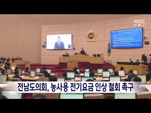 전라남도의회가 농사용 전기요금 인상 철회를 정부에 촉구했습니다. 전남도의회는 농사용 전기요금의 인상은 농수산물 생산비 상승으로 이어져 결국 농수산업 채산성 악화와 밥상 물가 상승으로 이어진다고 주장했습니다.
