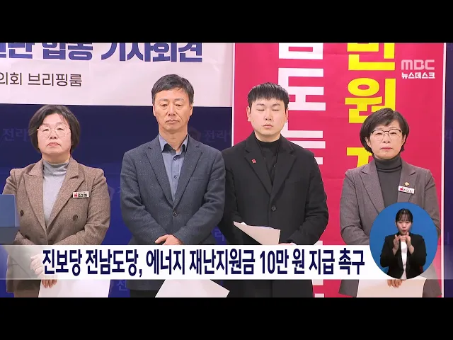 진보당 전남도당은 에너지 가격 급등에 따른 재난지원금 지급과 횡재세 도입을 전라남도와 정부에 촉구했습니다. 진보당은 "전라남도가 홀로사는 노인 난방비 지원 등을 하고 있지만 적극적인 대책이 아니다"며 모든 도민에게 에너지 재난지원금 10만 원을 지급해야 한다고 주장했습니다. 또 서민에게 닥쳐 온 난방비 폭탄...