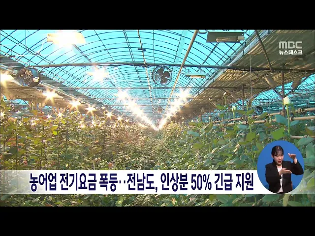 전라남도가 전기요금 인상으로 어려움을 겪고 있는 농어업인들을 위해 지난해 4분기 농어업분야에 사용한 전기요금 인상분의 50%를 지원하기로 했습니다. 전남 14만 6000 농가가 평균 3만5000원을 지원받고, 어가 2489가구가 평균 88만 5000원을 지원받는 등 14만 8000여 가구가 혜택을 볼 것으로 예상됩니다. 농어업용 전...