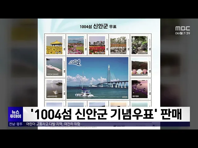 신안군은 이달부터 '1004섬 신안군 기념우표'를 신안군과 목포시 우체국에서 판매하고 있습니다. 이번에 제작된 기념우표는 지난 달 17일 신안군과 한국우편사업진흥원, 목포우체국이 신안군 농수특산물 판로 확대를 위한 업무협약을 신안군청에서 체결하고 이를 기념하기 위해 발행됐습니다.