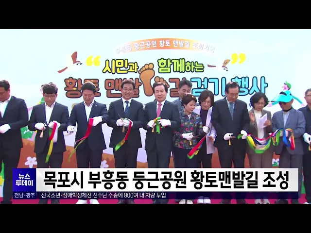 목포시가 부흥동 둥근공원에 황토맨발길을 조성했습니다. 부흥동 황토 맨발길은 길이 5백 20미터로, 기존 공원 수목과 쉼터가 어우러지도록 조성됐습니다. 목포시는 최근 맨발길 조성을 기념해시민 백여 명이 참여한 가운데 체험행사를가졌습니다.