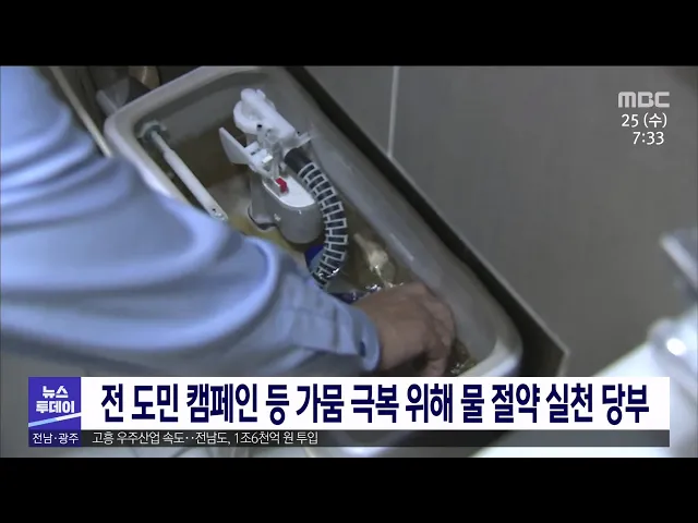 전라남도는 극심한 가뭄으로 제한 급수가 도내 전역으로 확산될 우려가 커짐에 따라 도민들에게 물 절약 실천을 당부하고 있습니다. 전라남도는 세면대나 싱크대 등 하부 수도밸브 조절을 통한 수압 저감과 양치컵 사용하기, 설겆이 할때 물 받아서 하기 등 생활 속 물 절약 실천 동참을 강조하고 있습니다. 이와함께 SNS ...
