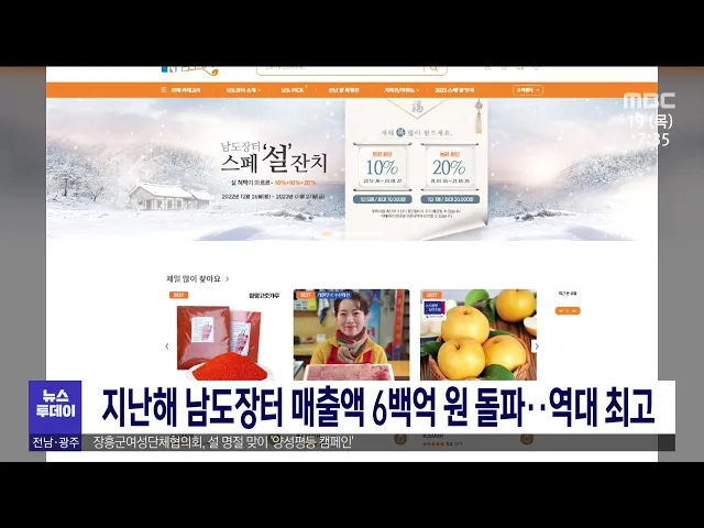 전남 농수축산물 쇼핑몰인 남도장터가 지난해 역대 최고인 603억 원의 매출을 달성해 지방자치단체 운영 쇼핑몰 가운데 1위를 유지했습니다. 남도장터는 최근 5년 동안 매출액 대비 100배 이상의 성장을 거둔 가운데 전라남도는 입점 업체와 상품 다양화, 비활성화 업체에는 원인을 분석한 맞춤형 컨설팅을 추진한 것이 효...