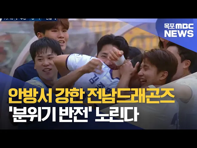 ◀ 앵 커 ▶올 시즌 초 4연승과 탄탄한 수비력을 보여준 전남드래곤즈가최근엔 6위까지 밀리며 부진한 모습입니다.이번 주 일요일 경남FC와의 홈경기에서 반드시 우승해분위기 전환에 성공하겠다는 각오입니다.김단비 기자입니다.◀ 리포트 ▶시즌 초반 지난해와는 확연히 달라진수비 능력을 보여준 전남드래곤즈.올 시즌 4경기...
