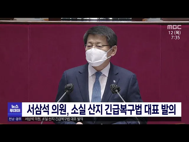 서삼석 국회의원이 산불로 소실된 산지를 긴급하게 벌채할 수 있도록 하는 법룔 개정안을 대표 발의했습니다. 서 의원은 훼손된 산지를 벌채 등의 복구 작업 없이 방치하면 각종 자연재해로 인한 산사태 피해를 더욱 키울 수 있다고 지적하고 산주 동의 없이도 긴급 복구를 할 수 있는 법적 근거를 마련했다고 밝혔습니다....
