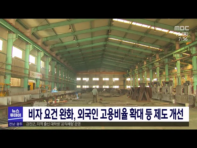 전라남도가 조선업 인력난 해소를 위해 건의했던 비자제도 등 개선사항이 법무부 대책에 반영됐습니다. 전라남도 건의로 반영된 법무부 제도 개선 내용은 조선 용접공 고용기업에 대한 비자발급 요건을 최근 3년간 연 평균 매출액 10억 원 이상에서 최근 1년간 연 평균 매출액 10억 원 이상으로 완화하고 외국인 고용비율은...
