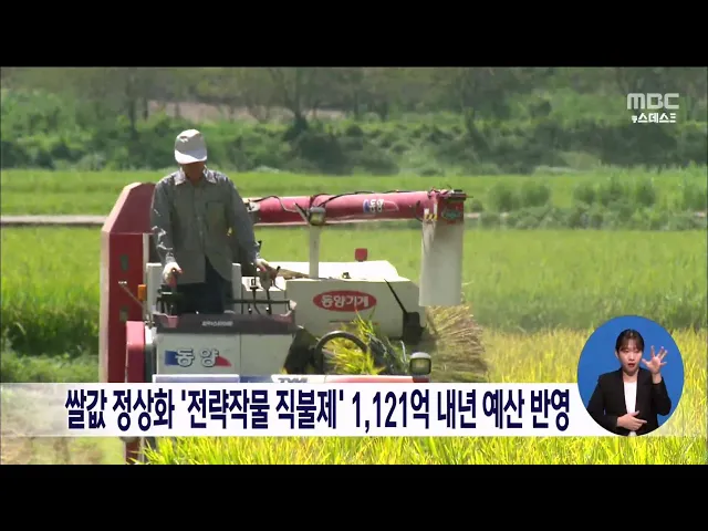 쌀값 안정을 위한 전략작물 직불제 예산이 국회 심의 과정에서 당초 정부 예산안보다 4백억 원 늘어난 1121억 원 반영됐습니다. 국회 신정훈 의원은 쌀값 폭락의 원인인 구조적인 쌀 과잉생산을 막기위해서는 논 타작물 재배지원 사업 등 쌀 생산 조정이 필요하다며 이번 국회 예산 심의 과정에서 관련 예산이 대폭 증액된...