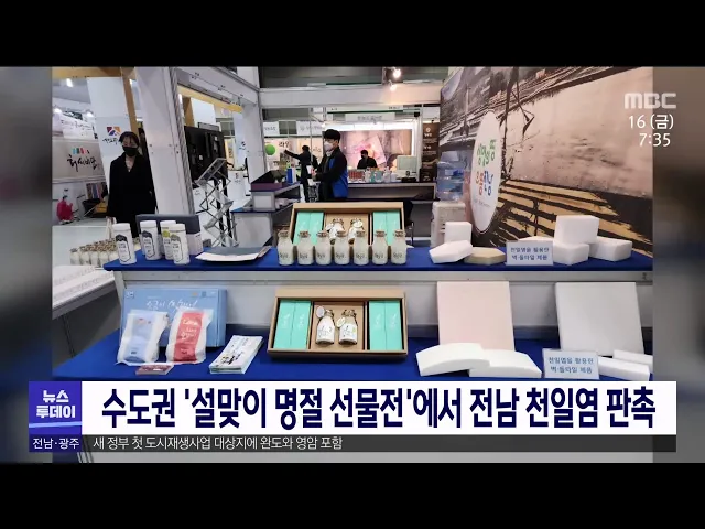 전라남도가 내일(17)부터 나흘 동안 서울 코엑스에서 열리는 '설맞이 명절 선물전'에 참가해 천일염 제품 전시와 판매 활동을 펼칩니다. 이번 행사에는 도내 우수 천일염으로 개발한 소금치약과 아로마 솔트, 솔트 입욕제 등의 생활용품과 함께 3년 묵은 천일염, 다시마 소금 등 요리용 기획세트 등도 선보입니다.