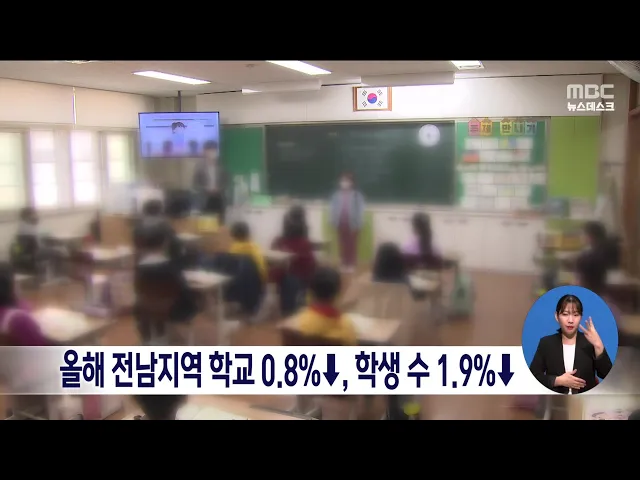 전남지역 학교와 학생수가 감소한 반면 교원은 소폭 증가한 것으로 나타났습니다. 2022년 전남교육통계 연보를 보면 올해 전남의 학교수는 1353곳으로 지난해보다 0.8% 감소했고, 학생수는 20만 333명으로 1.9% 줄었습니다. 반면 교원 수는 2만2천288명으로 지난해보다 0.9% 증가했습니다.