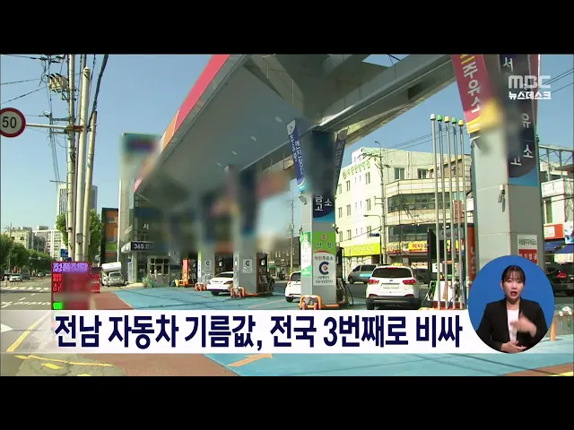 전남의 평균 자동차 기름값이 전국에서 3번째로 비싼 것으로 나타났습니다. 한국석유공사 오피넷을 보면 오늘(13) 전남의 평균 보통휘발유 가격은 1597원, 경유는 1823원으로 서울과 강원에 이어 전국에서 3번째로 높게 나타났습니다. 전남에서는 완도군의 보통 휘발유가격이 1720원으로 가장 높았고, 나주시가 1539원으로 ...