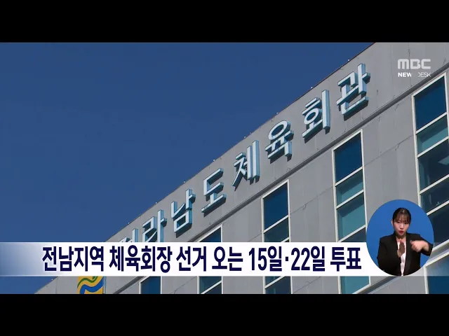 전라남도선거관리위원회는 오는 15일과 22일 전라남도체육회장과 시군 체육회장 선거 투표를 각각 실시합니다. 전남체육회장 투표는 오는 15일 오후 2시, 전라남도체육회관에서 실시되고, 시군체육회장의 경우 중앙선관위 누리집에서 투표소 위치와 시간을 확인할 수 있습니다. 한편 전남체육회장 선거에는 3명의 후보가 등...