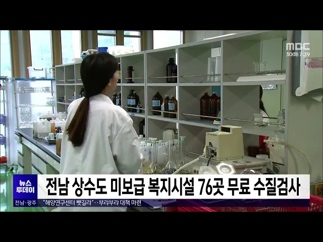 전남보건환경연구원이 지하수를 먹는 물로 사용하는 19개 시·군 상수도 미보급 지역 내 76개 사회복지시설을 대상으로 무료 수질검사에 나섭니다.수질검사는 지하수와 정수기 통과수를 대상으로 이뤄지며 하수는 먹는 물 수질 기준에 따라 일반세균 등 46개 항목을, 정수기 통과수는 탁도와 총대장균군을 검사합니다.