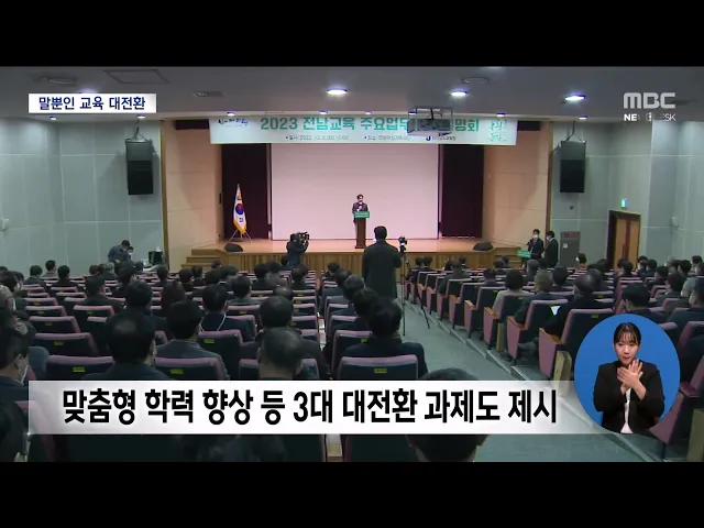 ◀ANC▶ 전라남도교육청이 2023년을 전남교육 대전환의 원년으로 선포했습니다. 새로운 교육 정책을 추진하겠다며 대대적인 계획을 발표했지만, 기존 사업을 일부 수정하는 선에 그치는 등 새로운 내용을 찾아보기 힘들었습니다. 박종호 기자가 보도합니다. ◀END▶ ◀VCR▶ 주민직선 4기 전라남도교육청이 2023년을 '전...