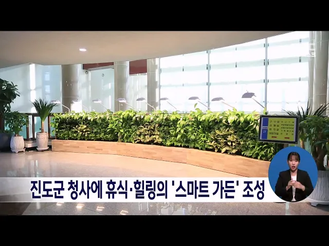 진도군은 공공시설 이용자들에게 쾌적한 환경을 제공하기 위해 '스마트 가든' 조성했습니다. 군 청사 2-4층 로비에 조성된 스마트 가든은 식물자동화 시스템을 통해 자동관수,조명관리 등 식물 생육을 자동관리하는 실내 정원입니다.