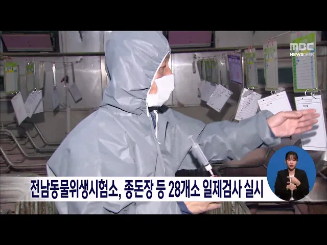 전남동물위생시험소는 전염병 청정화를 위해 오는 23일까지 종돈장 등 28개소를 대상으로 가축전염병 일제검사를 실시합니다. 전남동물위생시험소는 3분기까지 종돈장 사육돼지 4415마리를 검사해 전염병 예방을 위한 구제역과 돼지열병 백신 항체 양성률을 96%로 확인했습니다.