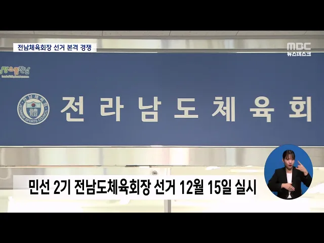 ◀ANC▶ 내년 전남에서 개최되는 전국체전을 성공시키고 전남의 체육을 이끌 민선2기 전남체육회장 선거가 열흘 앞으로 다가왔습니다. 이제 본격적인 선거운동이 시작되는데 기간도 짧은데다 제약도 많다보니 우려도 큽니다. 김진선 기자가 보도합니다. ◀END▶ ◀VCR▶ 70여개 종목 단체와 22개 시군 체육회를 대표하는...