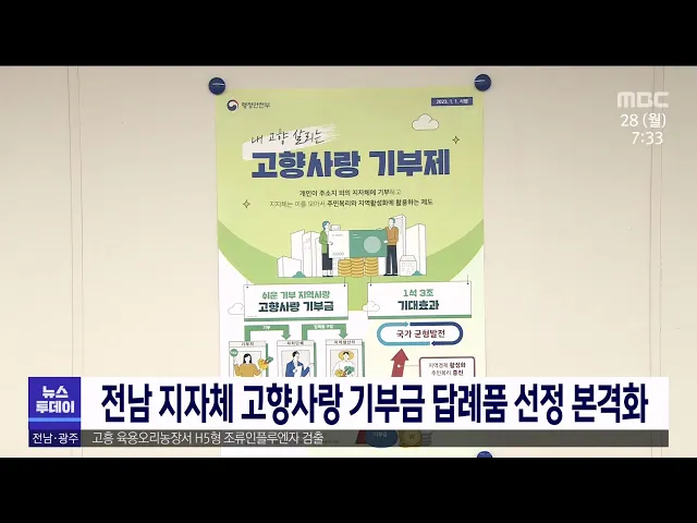 내년 1월부터 시행되는 고향사랑 기부제에 따라 지자체마다 지역 특색을 살린 답례품 선정작업을 서두르고 있습니다. 목포시는 홍어와 김, 건어물 선물세트와 함께 해상케이블카 탑승권 등 관광체험 상품권을 검토하고 있습니다. 또 장흥군은 고액기부자를 겨냥해 손노리개용 귀족호도를 포함시켰고, 강진군은 농촌 힐링 ...