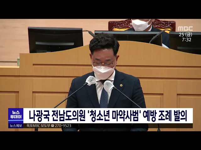 전남도의회 나광국 의원은 매년 늘어나는 마약 범죄로부터 학생들을 보호하기 위해 전남교육청 유해약물 피해예방교육 조례를 대표 발의했습니다. 조례안은 교육청은 매년 기본계획을 수립해 학생과 학부모, 교직원을 대상으로 유해약물 피해예방 교육을 실시하고, 교육에 필요한 실태조사를 할 수 있도록 했습니다. 또, 전...
