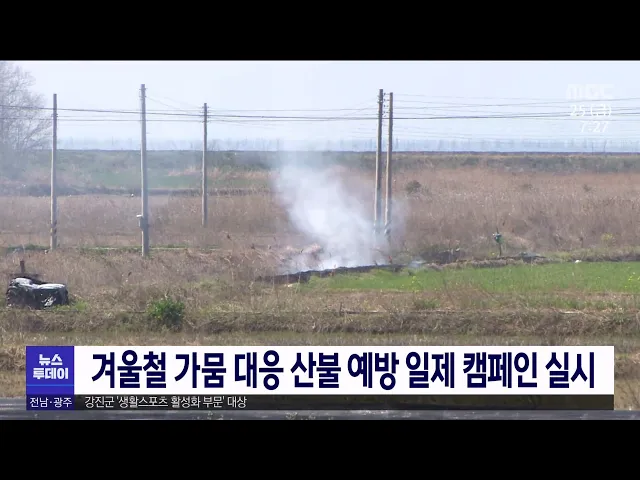 전남소방본부는 12월 2일까지 9일동안 겨울철 가뭄 대응 산불 예방 일제 캠페인을 실시합니다. 전남소방본부는 논, 밭두렁이나 각종 쓰레기 소각 금지와 산에서 연기나 불을 발견하면 즉시 신고하기 등 산불예방 수칙을 적극 홍보하고, 지도 단속에 나설 예정입니다. 또 주요 전통시장과 터미널 등 다중밀집 장소에서 겨울...