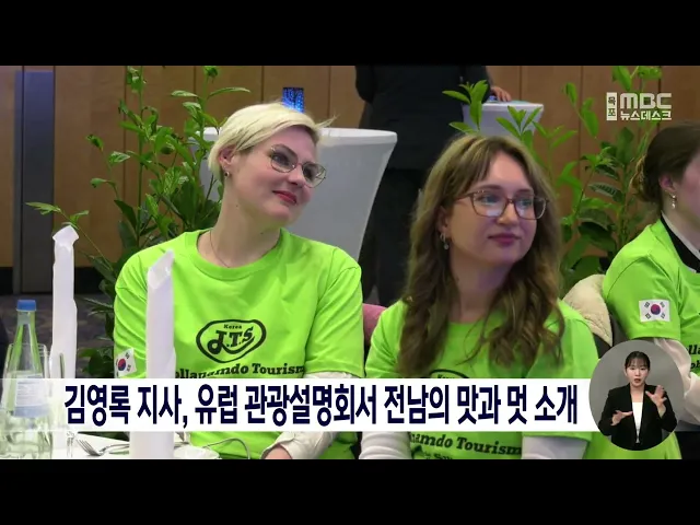 김영록 전남지사는 독일 베를린에서 열린 전남 유럽 관광설명회에 참가해 현지 여행업계 등에 전남을 소개했습니다.유럽에서 열리는 전남 관광설명회는 이번이 처음으로 김영록 지사는“전남은 올해부터 3년간 종합 관광축제인 전남 세계관광문화대전을 개최해 다양한 축제와흥미로운 문화예술 콘텐츠를 준비했으니, 많은 방...