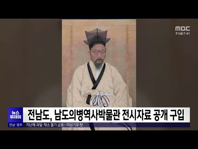 전라남도가 나주시에 들어설 남도의병역사박물관에 전시할 자료를 공개 구입하고 기증·기탁 신청을 접수받습니다.구입 대상은 1555년 을묘왜변부터 1919년 3·1운동까지 의병과 관련된 고서와 초상화, 사진, 무기류 등으로매도를 바라는 개인과 업자 등은 전남도 누리집 공고란을 참고해 전자우편이나 우편으로 접수할 수 있...