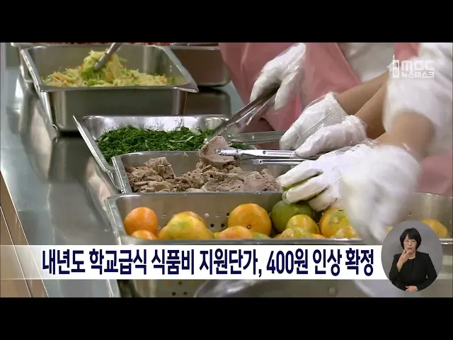 내년도 학교급식 식품비 지원단가, 400원 인상 확정