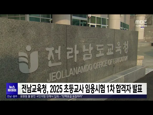 전라남도교육청이 2025학년도 유치원과 초등학교, 특수학교의교사 임용후보자 선정경쟁 제1차 시험 합격자를 발표했습니다.유치원 70명, 초등학교 201명, 유치원과 초등을 포함한 특수학교 30명 등 총 301명의 제1차 시험 합격자는,오는 16일까지 2차 시험을 위한 서류를 제출해야 하며2차 시험 장소는 다음달 8일부터 이틀...