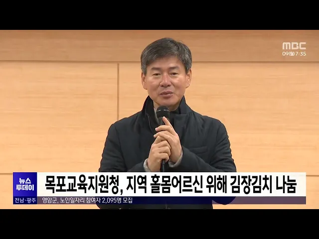 전라남도목포교육지원청이지역 다문화 학생과 취약계층,학부모 등 교육가족 90여 명과 함께겨울나기를 위한 김장 나눔 행사를진행했습니다.목포시노인복지관에서 진행된이번 김장 나눔 행사에서는한국 전통문화 체험과 함께직접 담근 김치 1,000kg이 마련돼지역 홀몸 어르신 100여 가구에전달됐습니다.