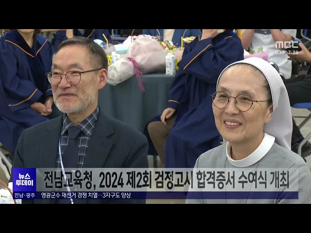 전라남도교육청이2024년도 초·중·고졸 검정고시 최종 합격생들의 출발을 응원하기 위한 합격증서 수여식을 개최했습니다.올해 제2회를 맞은 전남교육청 검정고시에서는전체 응시생 729명 중 72%인 525명이 합격했으며,올해는 시험별로 초중고졸 각각 칠순이 넘는 응시생들도 합격의 영예를 안았습니다. ◀ INT ▶ 박성환/제2...