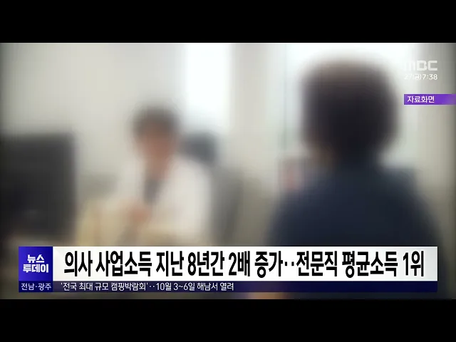 의사들의 평균소득이 전문직 중 가장 높은 금액을 기록한 것으로 나타났습니다.더불어민주당 안도걸 의원이국세청에 제출받은 자료에 따르면전국 의사의 평균소득은 지난 8년간 2배 가량 증가해 주요 전문직 중 가장 높은 4억 원으로 집계됐으며이는 2위를 기록한 회계사의 1.8배에 달하는 것으로 분석됐습니다.안도걸 의원...