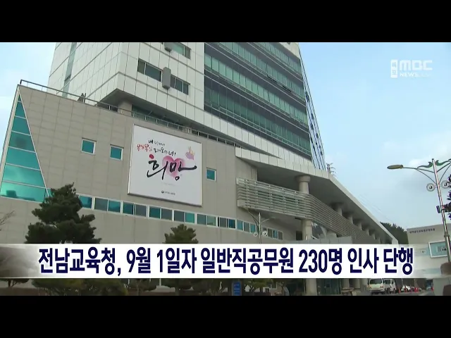전남교육청, 9월 1일자 일반직공무원 230명 인사 단행