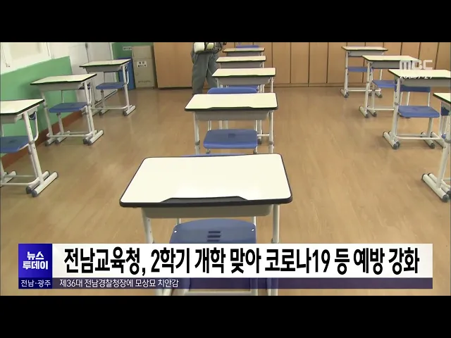 전라남도교육청이 2학기의 개학을 맞아 코로나19 재유행과 백일해 등 감염병의 예방 대응을 강화하고 있습니다.전남교육청은 교내 방역물품의 현황을 파악하고물품을 비축하도록 요청하는 한편,방역 당국과의 협조 체계를 강화해 실내 공간의 주기적인 환기와 일상 소독 등 예방적 대응에 나설 예정입니다.