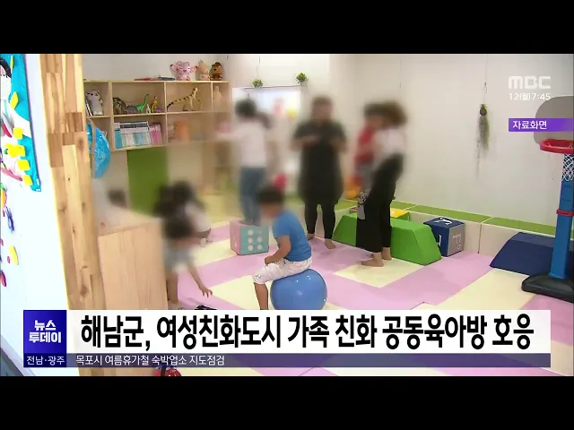 해남군이 여성친화도시 돌봄인프라를구축하기 위해 추진하는 공동육아방 운영이성과를 올리고 있습니다.보호자들이 아이 돌봄을 함께하고 양육 관련 정보를 공유하는 육아나눔 공간인 공동육아나눔터는 올해 상반기에 돌봄과 육아 품앗이 등 관내 4개소의 상시프로그램이 운영됐으며5,700여 명이 이용한 것으로 집계됐습니...