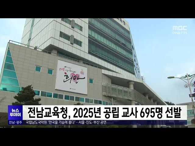 전라남도교육청이2025학년도 임용 시험을 통해공립교사 695명을 선발합니다.전남도교육청은 2025학년도에 특수 포함 유·초등학교 교사 198명과 특수‧비교과를 포함한 중등학교 교사 497명을선발한다고 밝히고, 선발 예정 과목과인원을 누리집에 예고했습니다.최종 선발 예정 분야 등 시험 세부 사항은 추후 시행계획 공고를...