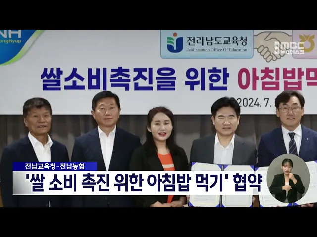 전라남도교육청과 전남농협이 ‘쌀 소비촉진을 위한 아침밥 먹기’의업무협약을 체결했습니다.전국 최초로 실시 중인 ‘아침 간편식 지원 사업’에 지역 쌀로 만든 간편식 제공을 검토 중인 전남교육청은이번 협약을 통해 아침밥을 통한 올바른 학생 식습관 형성과지역 쌀 소비 확대와 산업 육성 및농가 경영 지원의 효과를 기...