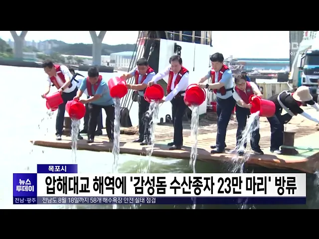 목포시는 감성돔 수산종자 23만 마리를 압해대교 인근 해역에 방류했습니다.감성돔은 방류 시 생존율이 높고 소비자 사이 경제적 가치가 높아 추후 어업인의 주요 소득원이 될 것으로 기대를 모으고 있습니다.목포시는 감성돔의 방류 효과를 높이기 위해 해당 어장주변의 방류종자 포획이 우려되는 어망 사용을 금지하고, ...