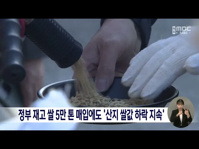 정부가 시중의 쌀 재고물량 5만 톤을 매입하기로 결정했지만지난해 11월부터 시작된 산지 쌀값 하락세는계속해서 이어지고 있습니다.통계청에 따르면 지난달 25일 산지 쌀값은 80kg 기준 18만 6,376원으로 전회에 비해 0.4% 하락한 가운데,이는 3년 전 동일 시점 기준 쌀값인 22만 1,308원과 비교해 15.8% 떨어진 것으로 파...