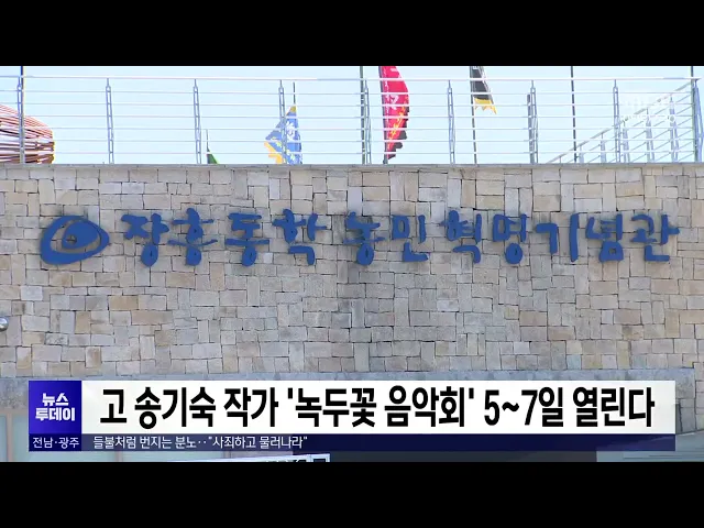 장흥군이 오는 5일부터 7일까지동학농민혁명기념관에서고 송기숙 작가의 저항정신을 기리기 위한'녹두꽃 음악회'를 엽니다.이번 음악회에서는 민주화를 위해 노력했던송기숙 작가의 저항정신을 주제로 한 인문학 강의와 동학농민혁명사에 등장하는 여성장군 '이소사'을 이야기를 담은 공연이 진행됩니다.