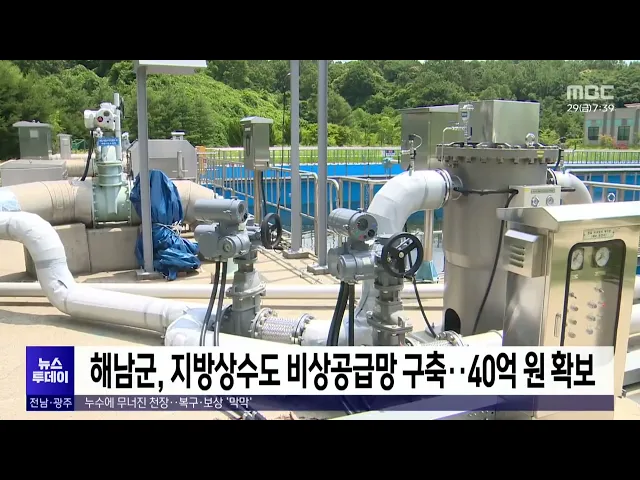 해남군이 내년 지방상수도 비상공급망 구축 사업에 신규 확정돼 사업비 40억 원을 확보했습니다.해남군은 오는 2026년까지 광역상수도 분기점에서 송수관로 4.6킬로미터를 설치해 가뭄과 수질사고 등 예상치 못한 수도사고가 발생할 경우, 비상 송수관로를 통해 안정적으로 지역에 수돗물을 공급할 계획입니다.