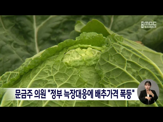 국회 농림축산식품해양수산위원회 문금주 의원은 이번 여름 배추 가격 폭등 원인이 정부와 한국농수산식품유통공사의 늑장 대응이라고 지적했습니다.문 의원은 배추가격 위기 '심각' 단계가지난 9월 4일부터 시작했지만 한국농수산식품유통공사는 20일 동안 별다른 세부 계획을 마련하지 않고 방치했다며, 위기단계 가이드...