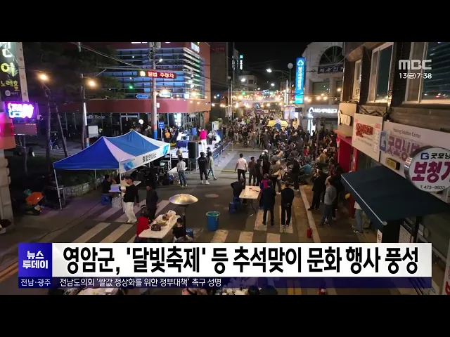 영암군이 추석을 맞아지역경제 활성화 등을 위한다양한 문화 행사를 엽니다.영암군은 오는 13일 저녁 7시부터영암읍 일대에서 뮤지컬 공연과팔씨름대회, 코미디 공연 등으로구성된 '달달한 달빛축제'를 개최합니다.또, 13일부터 15일까지영암도기박물관에서 소원성취 장작 쓰기와 불때기 등 체험프로그램을 운영하고, 기찬...