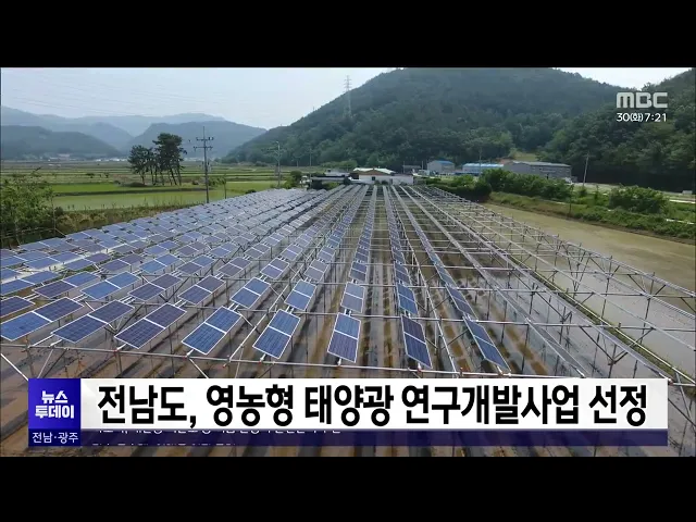전라남도는 산업통상자원부의영농형 태양광 분야 3개 연구개발과제 공모에 선정돼국비 60억 원을 확보했습니다.전라남도는 지역 기업과 대학, 연구기관 등이 참여해'작물 위 고정식 로프탑형 표준모델 설계' 등 3개 연구개발 과제를 2026년까지 개발할 예정이라고 설명했습니다.