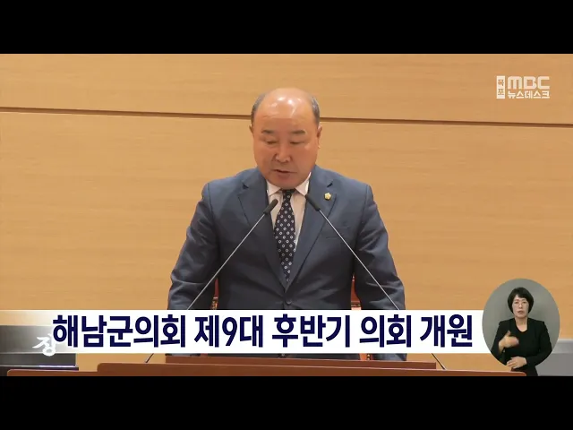 해남군의회가 후반기 개원식을 갖고오는 26일까지 제338회 임시회에 돌입했습니다.제 9대 후반기 해남군의회는 2024년도 군정주요업무와 하반기 계획보고를시작으로 25일까지 조례안 6건과 동의안 1건,공유재산관리계획안 1건 등 10건의 주요 안건을 심의할 계획입니다.