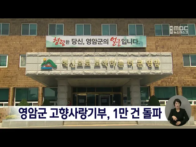 영암군 고향사랑기부가 1만 건을 돌파했습니다.영암군의 누적 기부 건수는지난 11일 기준 1만 122건으로 영암군은 '고향사랑e음'을 통한 76건의 지정기부와 함께 지인추천시 상품권지급 등 다양한 행사를 통해 기부가 증가하고 있는 것으로 분석했습니다.영암군은 고향사랑기부 확대를 위해 씨름단과의 1일식사권과 도자기 ...